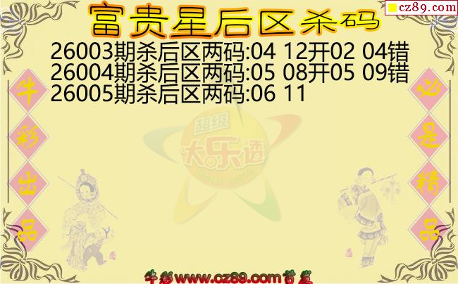 大乐透2026005期富贵星后区杀码图谜